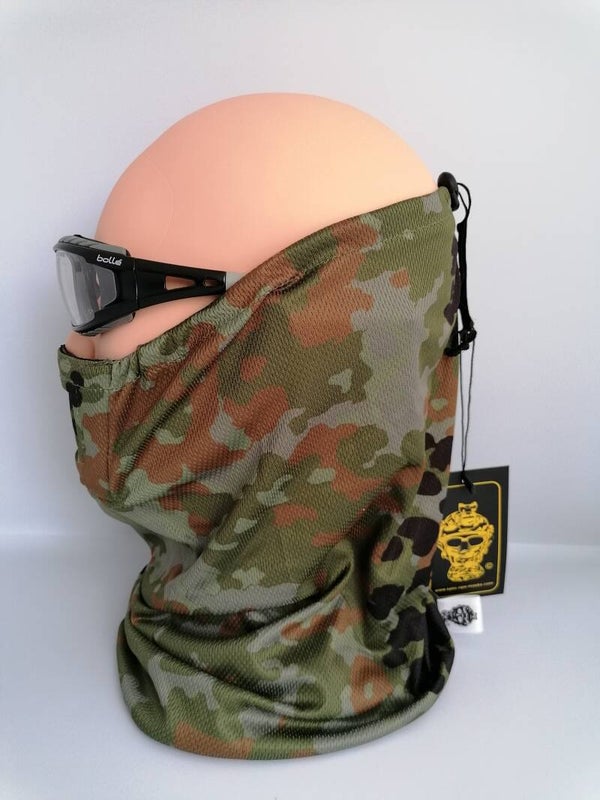 WHAT MAKES THIS DIFFERENT TO OUR SPEC-OPS MESH, WELL BASICALLY THE MATERIAL, OUR SPEC-OPS MESH IS MADE FROM 180GSM OF PERFORATED QUICK DRYING POLYESTER, OUR SPEC-OPS BRAVO MASK IS MADE FROM 160GSM FINELY PERFORATED QUICK DRYING POLYESTER, MAKING IT WARMER IN THE COLD WEATHER BUT ALSO ALLOWING YOUR SKIN TO BREATH WHEN YOUR HOT, VAPOUR WICKING ACTION TO DRAW SWEAT AWAY FROM THE SKIN, ALLOWING YOU TO STAY COOL BUT WARM AT THE SAME TIME. THINK OF THIS AS A FULLY HI-BRED MASK, WITHOUT LOOKING AT IT WITH GLASSES, THIS LOOKS LIKE A SOLID LIGHTWEIGHT FABRIC.
